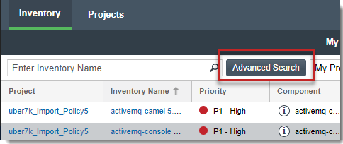 2. From the Advanced Search dialog, select Inventory with Open Alerts (located in the Inventory Notifications section), and click Apply.